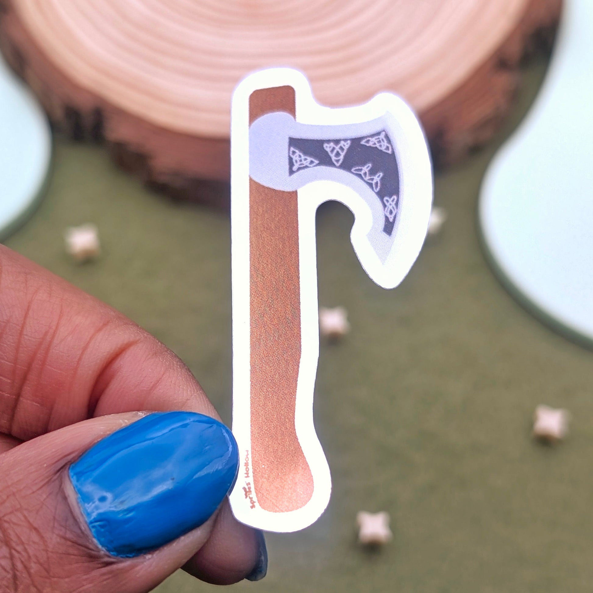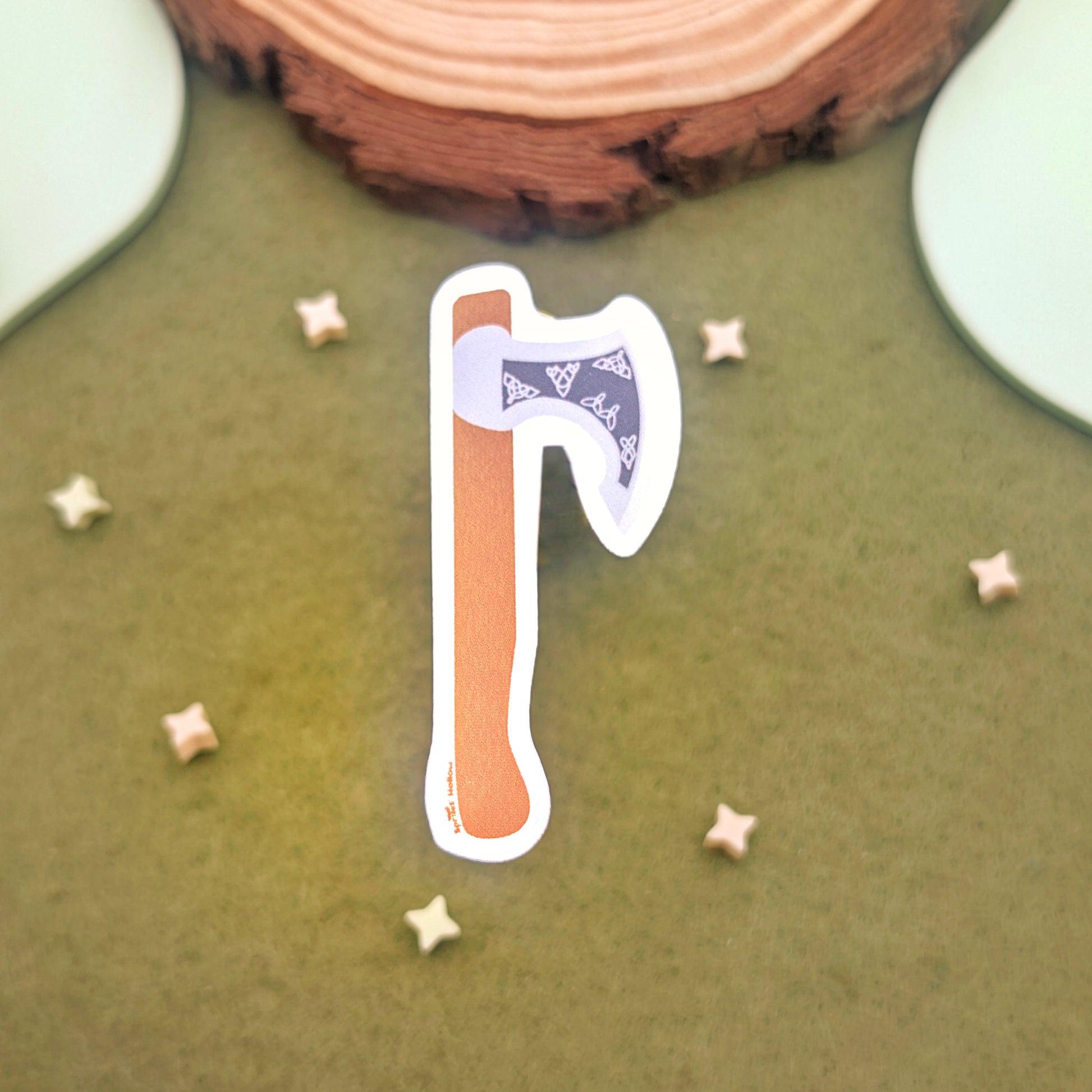 Looking for a melee weapon? Try this ornate metallic axe sticker.
