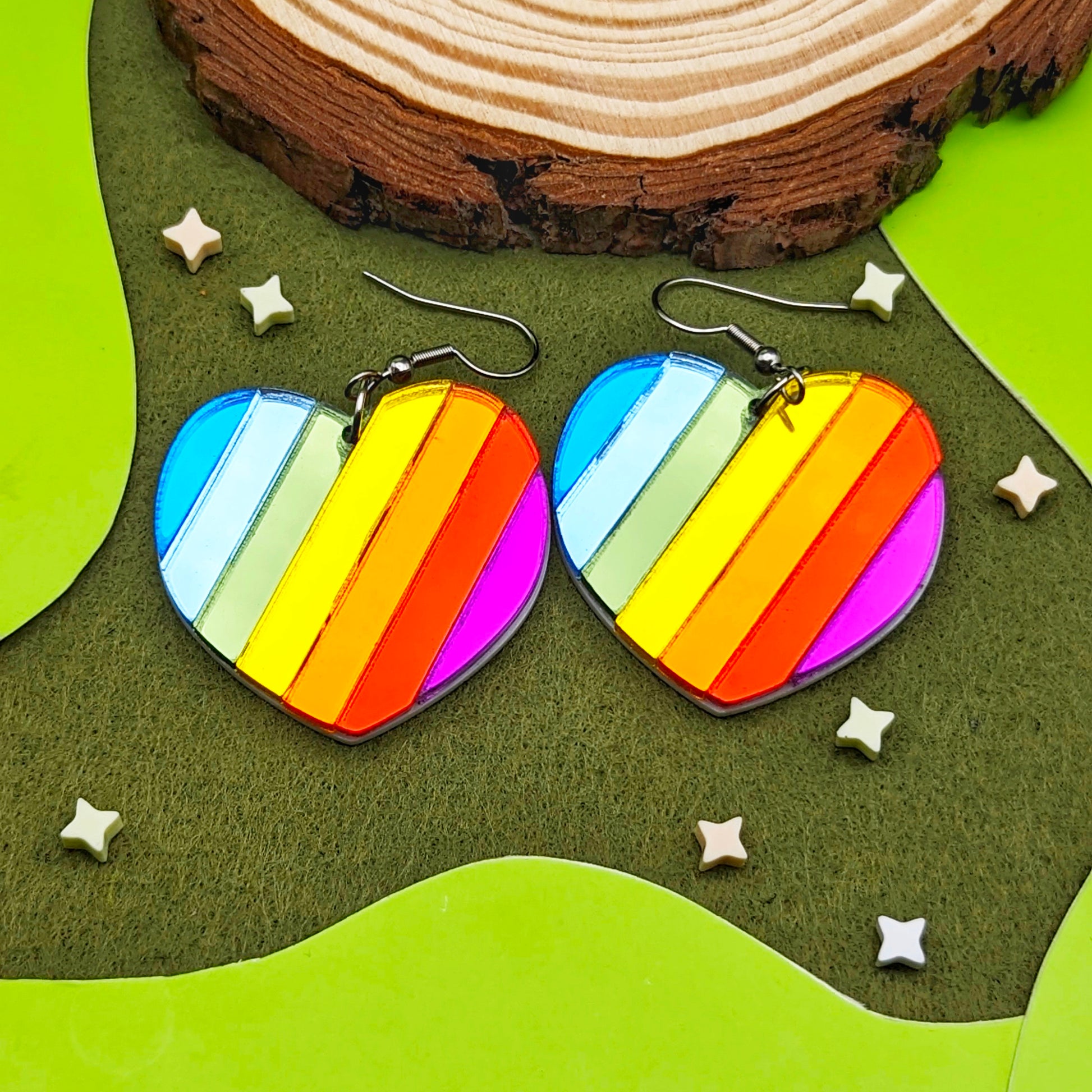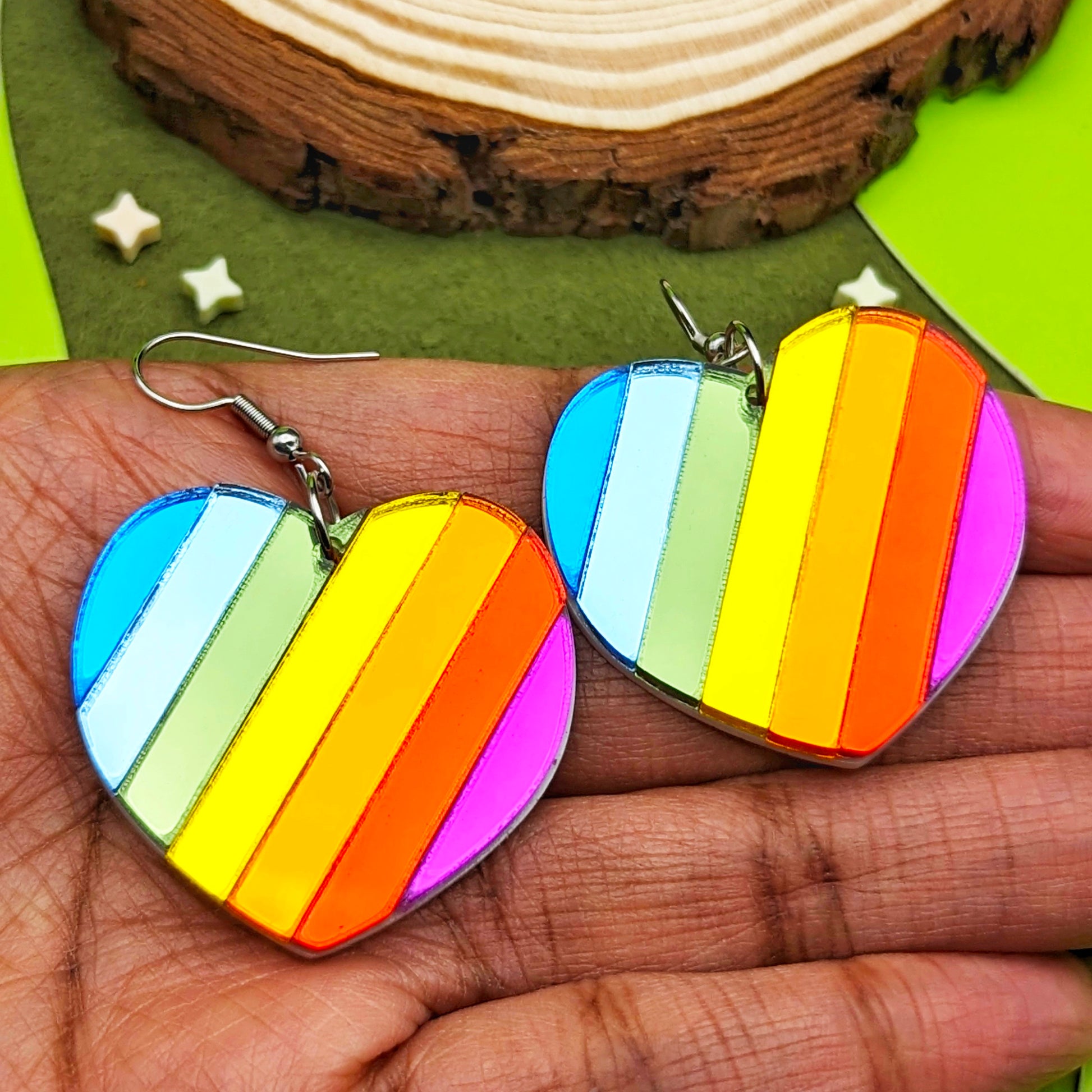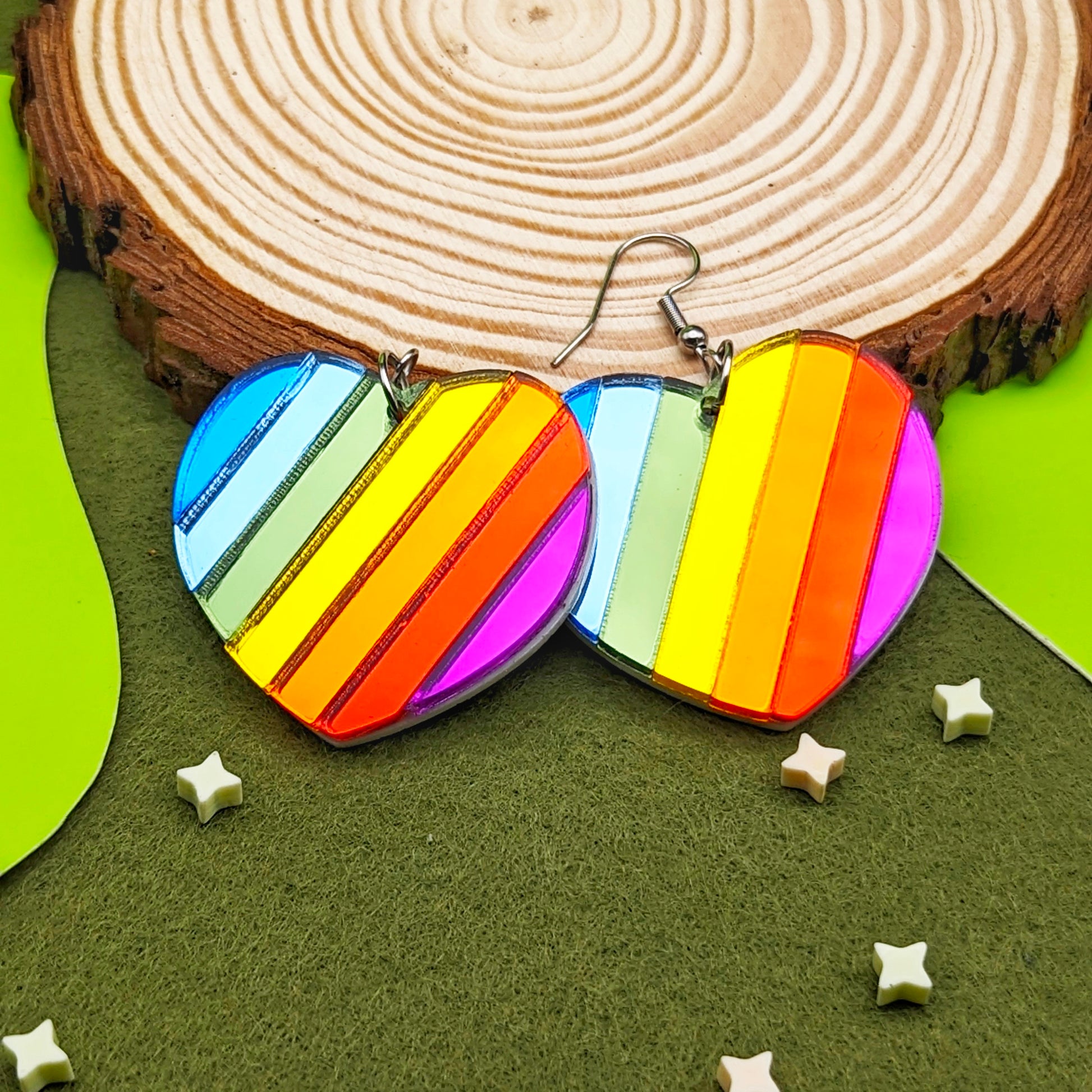 Handmade Rainbow Heart earrings.