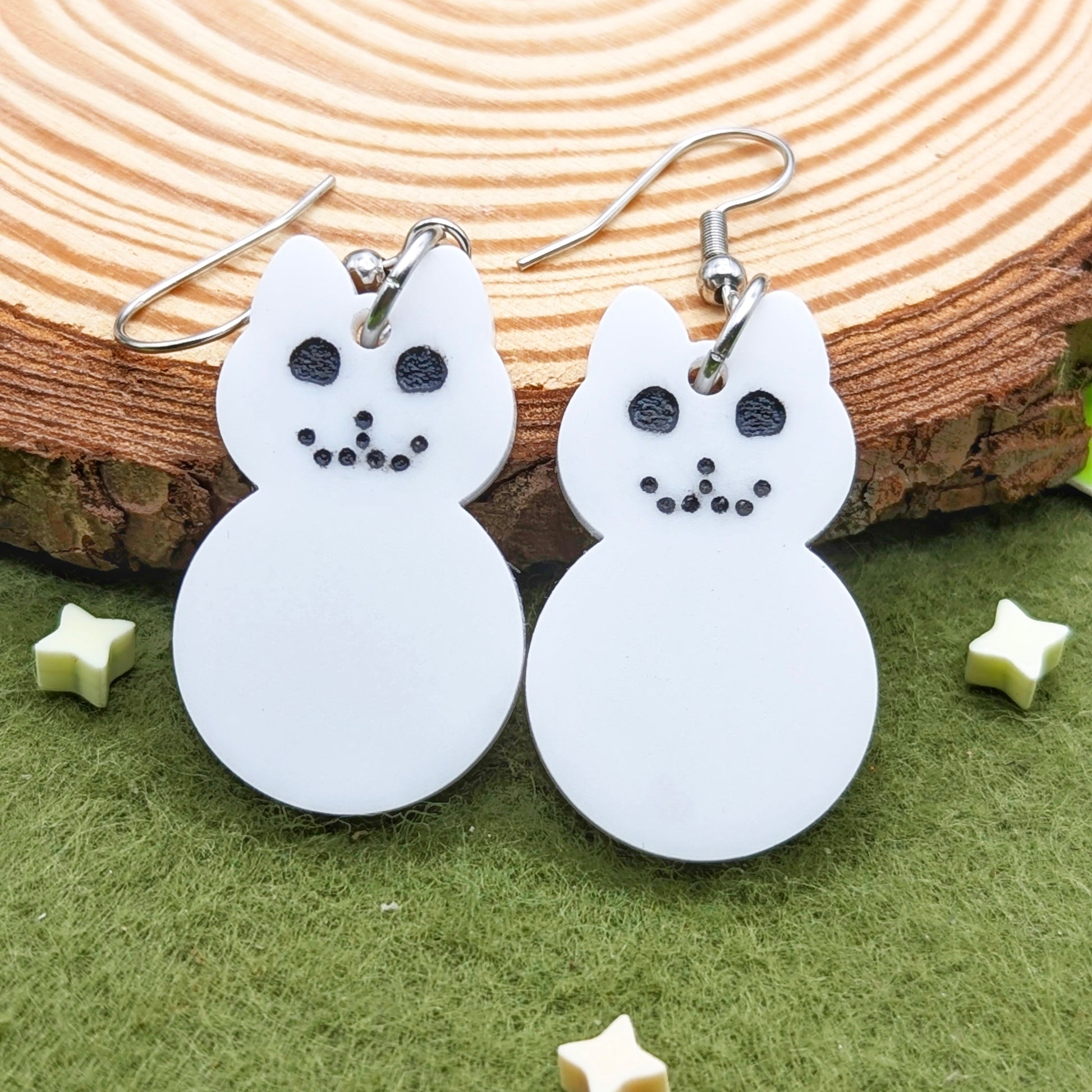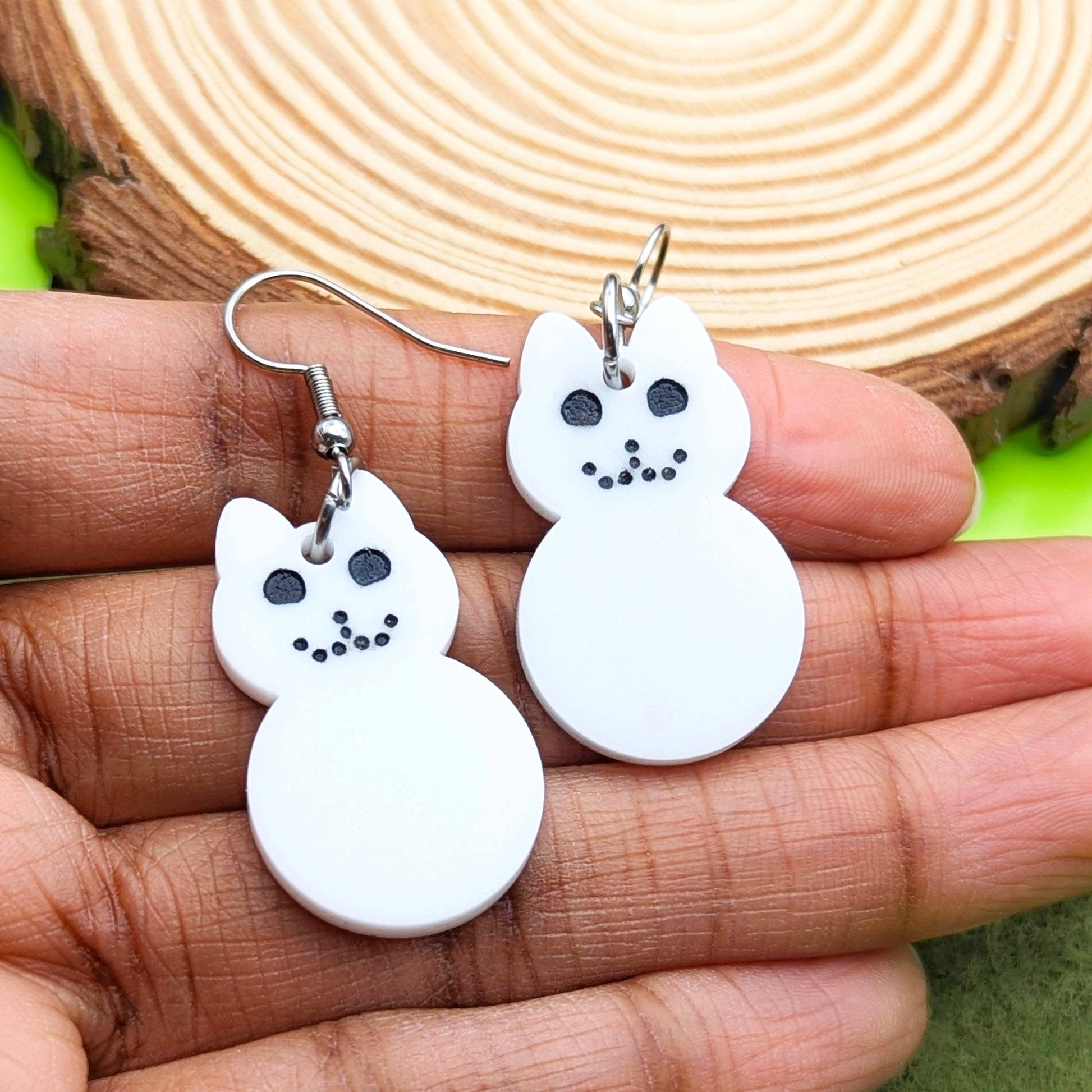 Snowy Kitty earrings. A Snowman, but a cat. Reminds you of wintertime fun!