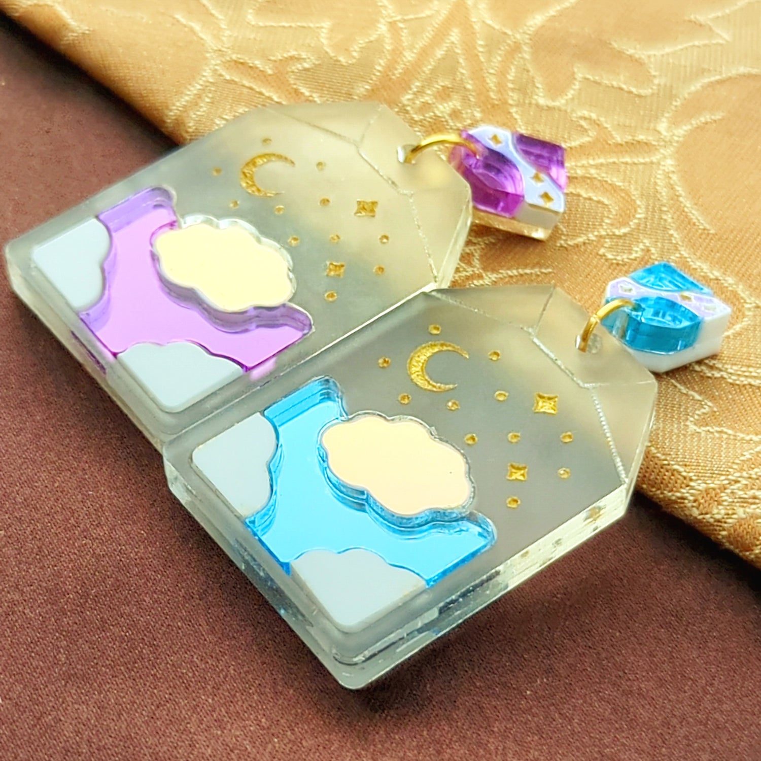 These kawaii, fantasy inspired earrings are a beautiful addition to any outfit. They feature cute & dreamy designs with soft pastels, sparkly stars, crescent moons, and fluffy clouds.